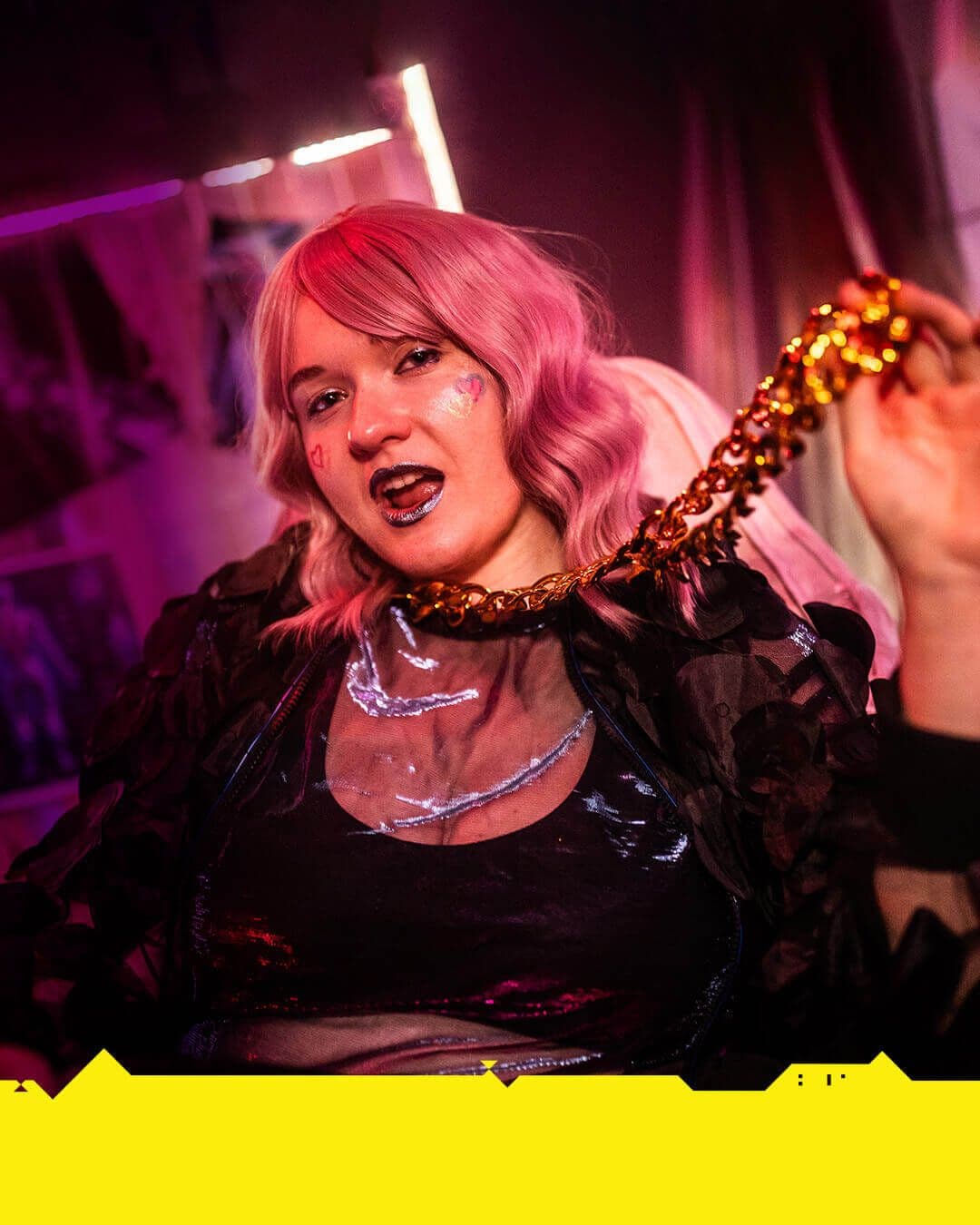 ⌦ Całość osadzona jest w neonowych, stylowych lokacjach inspirowanych Cyberpunk 2077, w klimatycznym, pięciopoziomowym barze wynajętym wyłącznie na nasze wydarzenie.